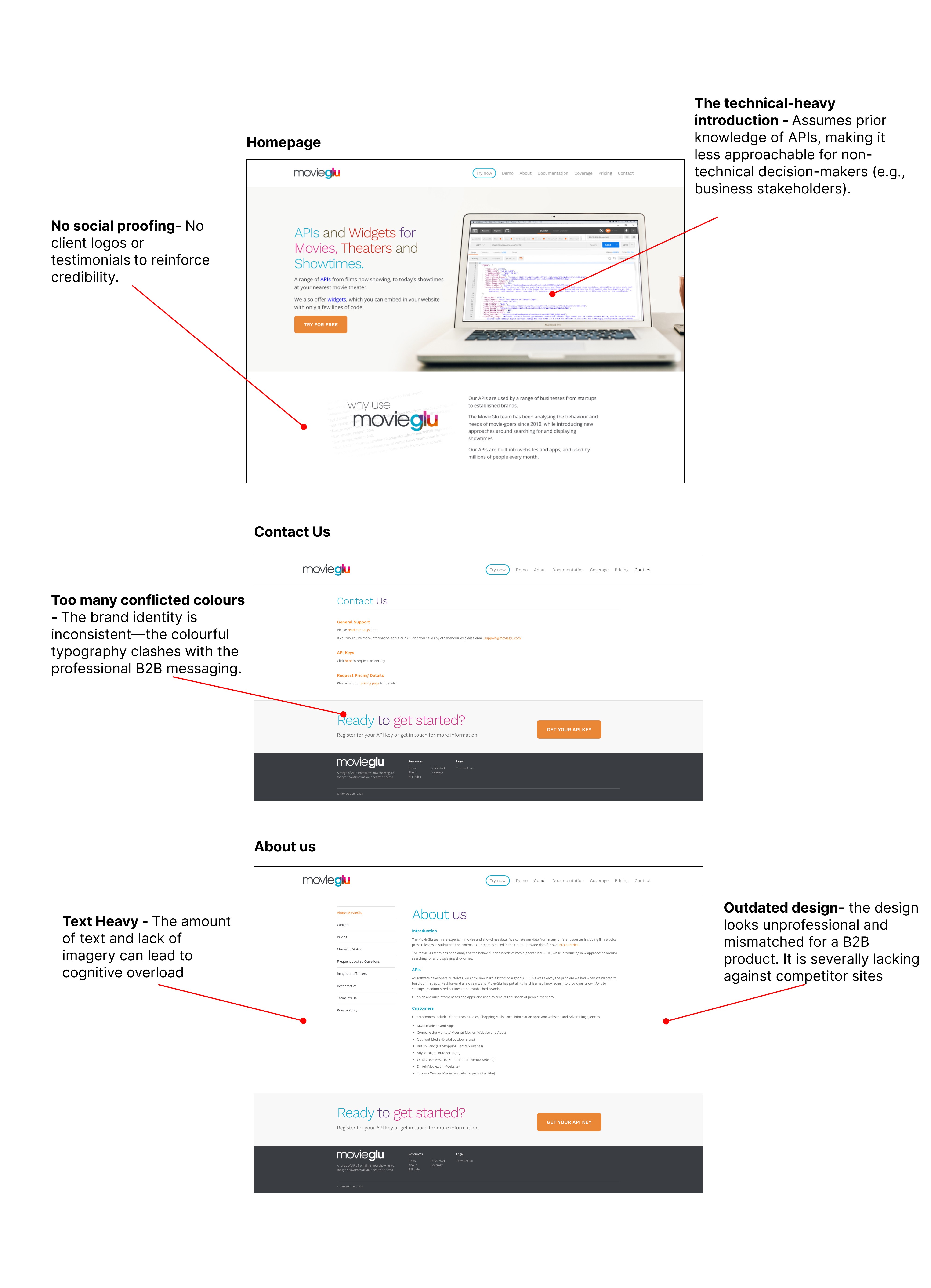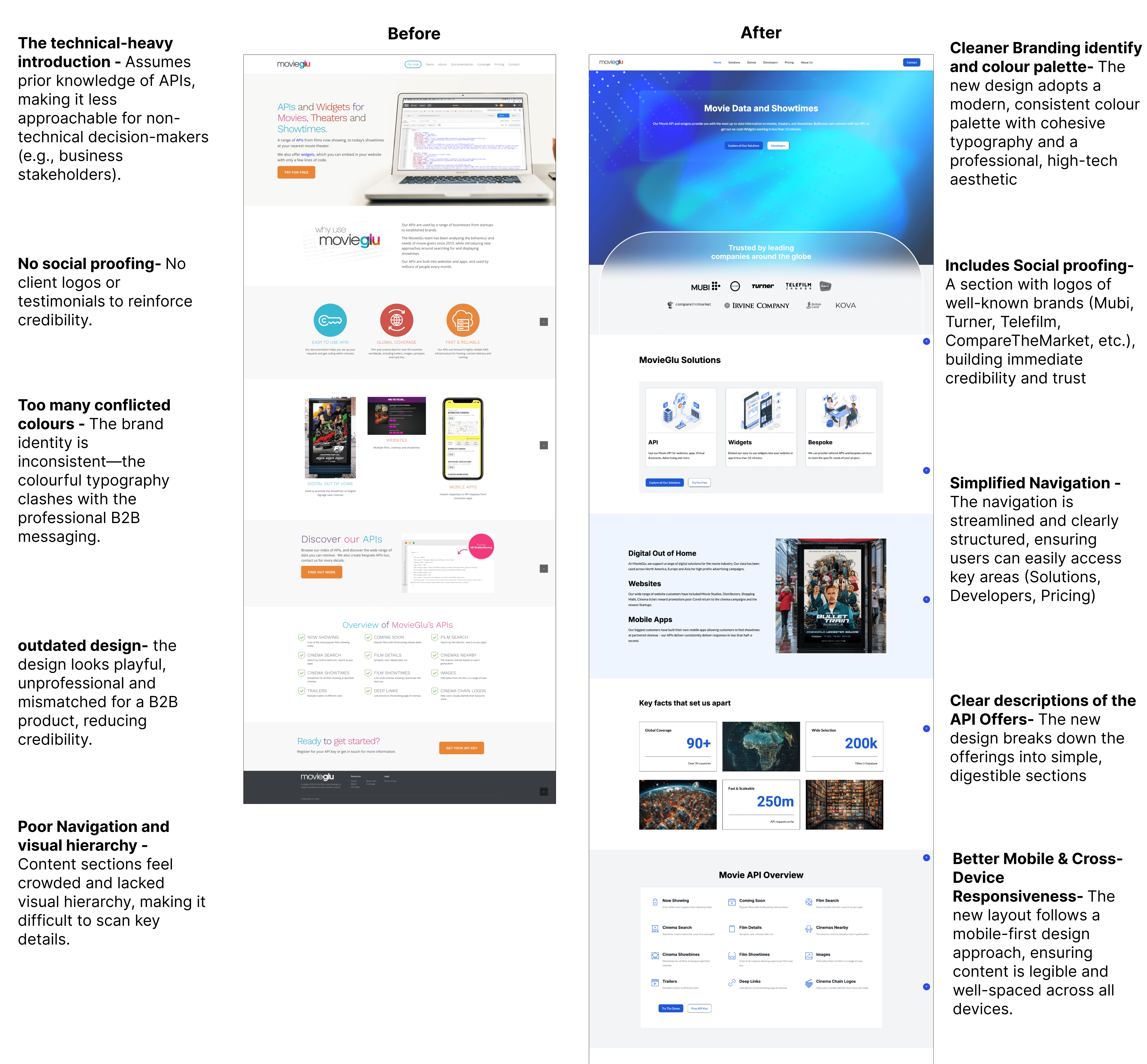 Ineffective Branding & Messaging ā The website wasnāt clearly communicating the value of MovieGluās APIs and services to potential B2B clients.