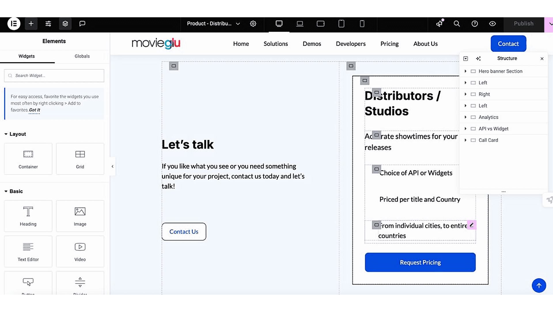 I led the full UX/UI redesign and front-end development of MovieGluās website, transforming its brand identity and user experience to drive B2B engagement. MovieGlu powers movie-related data for over 60 countries, offering APIs and widgets for showtimes, cinema listings, and more. My work improved navigation, increased usability, and helped attract high-value clients.