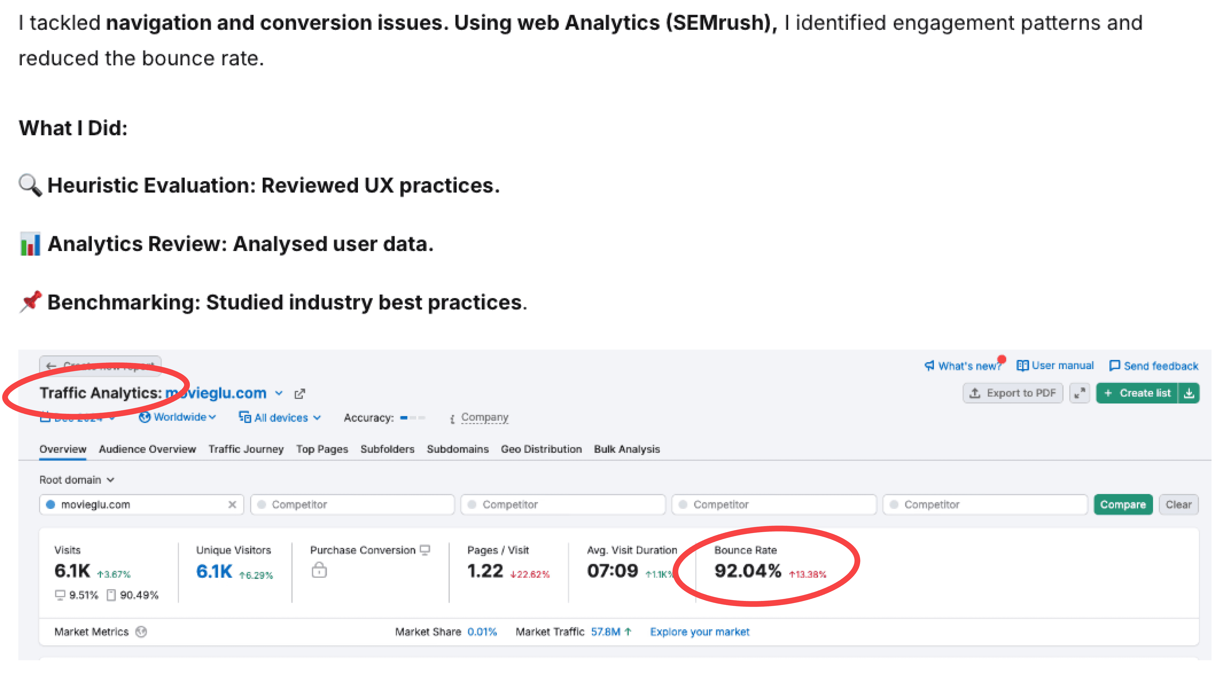 B2B website that struggled to convert visitors into business leads. Data from SEMrush revealed key issues: